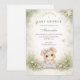 Ein sanftes und elegantes Babyshower-Design mit einem niedlichen Hasen, umgeben von zarten Salbei-grünen Blumen und luftiger botanischer Grünpflanzen. Sanfte Wasserfarben-Texturen, kleine Schmetterlinge und neutrale Blumendetails schaffen eine ruhige Wald-Nursery-Ästhetik mit einem raffinierten Storybook-Gefühl. Die natürliche Salbei-Palette gibt dem Design einen zeitlosen, geschlechtsneutralen Look, der frisch und ruhig wirkt. Perfekt für eine Salbei-grüne Babyshower mit einer süßen Wald-Atmosphäre.