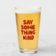 Dieses Design enthält eine Phrase, die jemanden dazu ermutigt, etwas zu sagen.