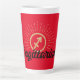 Zodiac-Latte-Tasse mit goldenem Sternexplosion-Akzent Sagittarius Astrologie mit schwarzem Text auf rotem Hintergrund