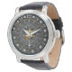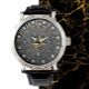 Sagittarius Watch mit: Vintages industrielles, metallisches Uhrengestyling mit gut sichtbaren großen Zahlen. Original Uhr Gesichtsdesign mit Gold, Silber, Diamanten, Edelsteinen und astrologischen zodiaktischen Schildern Kreis bedeckt. (Der Hintergrund der Uhr ist gedruckt / enthält keine aktuellen Edelsteine).