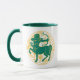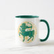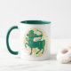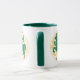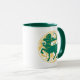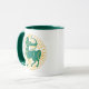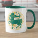 Sagittarius Zeichen des Zodiaks in grün und gelb auf einer zweifarbigen Kaffee-Tasse.