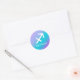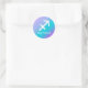 Ein Set runder Aufkleber mit dem Astrologie-Symbol für Sagittarius über einem blauen und lila Farbverlauf. Für jemanden, dessen Geburtstag zwischen 22. November und 21. Dezember ist.