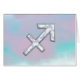 Eine Mutter des Perlmutt Sagittarius zodiac Symbol auf einem lebhaften pastellblauen und rosa Dekor drucken Hintergrund. Ein modernes Design für eine tolle Geburtstagsgeschenkidee für sie. Verwenden Sie den Link "Diesen Designer Gefragt", um mit uns Kontakt aufzunehmen, um spezielle Designanfragen zu erhalten oder um Hilfe bei Ihrem Anpassungsprojekt zu erhalten.