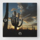 Saguaro Sunset II Arizona Wüste Landschaft Quadratische Wanduhr