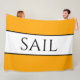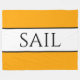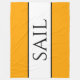 Dieses kühne, nautische Design zeichnet sich durch einen sportlichen, modernen "SAIL"-Text aus, der sich in einem breiten weißen Streifen im Zentrum befindet, der mit schlanken schwarzen pinstripes an den hellgelben orangefarbenen Außenstreifen hervorgehoben ist. Die Farben und Texte in diesem Design können personalisiert sein.