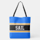 Dieses sportliche, sportliche Design mit feinem SAIL-Text in einem farblich hervorgehobenen, breiten schwarzen Streifen in der Mitte mit weißen und gelben pinstripes und hellblauen äußeren Streifen. Der Text kann personalisiert sein.