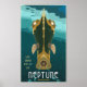 Vintages inspiriertes Reiseplakat nach Neptun. Segeln Sie unter dem Eis von Neptun an Bord des Flaggschiffs der Triton - Yellow Star Line.