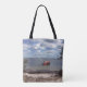 Die Szene auf dieser Tote Tasche ist ein Originalfoto von ZoeSPEAK eines Segelbootes in flachen Gewässern. Im Foto ist das rote Schiff auf einer Seite geneigt, gerahmt von Mangroven, einem Sandstrand und einem großen blauen Himmel, der mit duftenden weißen Wolken gefüllt ist.