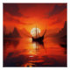 Ein ruhiges Kunstwerk, das während eines feuerroten Sonnenuntergangs ein Segelboot auf ruhigem Wasser zeigt und jedem Raum oder Produkt eine ruhige, nautische Touch verleiht. Ideal für Sonnenuntergang-Liebhaber und Segler.