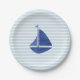 Sailboat Nautical Ocean Blue Stripe Papierplatte Pappteller