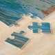 Drei Segelboote auf grünem Wasser, mit Aquarellfarben, Farbtönen und gemusterten Papieren entworfene Kunstwerke.