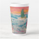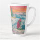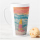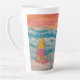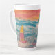 Segelboote segeln in rauem Meerwasser, heller orangefarbener Himmel, weiße Armaturen rund um die Insel, wunderschön handgemalt Latte Tasse.