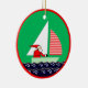 Creative sailing nautical Christmas ornament holiday gift featuring funny Santa sailor in a sailboat. To personalize edit text to add name or otherwise customize.