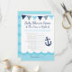 Testen Sie Ihr Baby Wissen mit The Price is Right - Sailor Edition! In diesem unterhaltsamen, interaktiven Spiel schätzen die Gäste die Kosten alltäglicher Babynahrung. Wer das Richtigste bekommt, gewinnt das Recht zu prahlen (und vielleicht einen Preis!). Mit seinem charmanten nautischen Design ist es das perfekte Spiel für Ihr "Baby on Board" Duschthema.