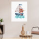 Sailor Bear Boat Waves Nautical Summer Boy Kinderzimmer Poster