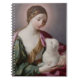 Notebook featuring an upscaled, digitally remastered image of St. Agnes holding a white lamb. St. Agnes is featured in the Roman Canon.
