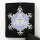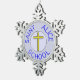 Color Patch Saint Alice Schule Weihnachtsschmuck. Gray Blue Hintergrund mit Bright Blue Buchstaben und Gold Cross Gerahmt durch eine Schneeflocke