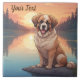 Heiliger Bernard sitzt bei Sonnenuntergang am See. Fügen Sie dieses Bild anderen Produkten hinzu. Fügen Sie auch Ihren eigenen Text hinzu. Ändern der Hintergrundfarbe. Viele Haustiere in meinem Laden.