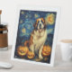 Saint Bernard Cute Dog Halloween Jack O Lantern Pumpkin Face Starry Night Van Gogh