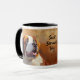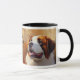 Zwei Seiten dieser Tasse für den Fan von Saint Bernard Dog zeigen ein nahes Porträt eines schönen Heiligen mit Sonne auf seinem Gesicht. Der Text in der Mitte sagt "Saint Bernard Dog", aber man kann ihn leicht personalisieren oder in alles andere ändern, was man möchte.