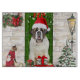 St. Bernard Dog Weihnachten sitzend draußen geschmückt Zuhause mit Weihnachtskranz, Weihnachtsbaum ist ein perfektes Weihnachtsgeschenk für Hundefreunde.