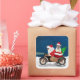 Ein Weihnachtsmann, der mit dem Fahrrad Weihnachtsbaum und den Heiligen Bernard-Hund als Geschenk liefert, ist eine Weihnachtsgeschenkidee für jemanden, der diesen Hund züchtet, die Liebe.