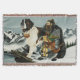 Ein Hund aus Saint Bernard und ein Zwerg sind an einem Wintertag entweder zu Fuß oder auf der Suche nach draußen.