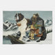 Ein Hund aus Saint Bernard und ein Zwerg sind an einem Wintertag entweder zu Fuß oder auf der Suche nach draußen.