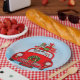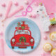 Saint Bernard Hund in Auto mit dem Weihnachtsmann Pappteller