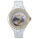 Weiße Damen Email Strassuhr