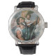 Uhr, Klassische Damenuhr mit schwarzen Lederarmband