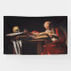 Dieses Design zeigt ein Gemälde des italienischen Malers Caravaggio (1571-1610) aus der Renaissance. Es zeigt Saint-Jerome, wie er in seinem Studium schrieb. Es wurde vorgeschlagen, Jerome hier im Akt der Übersetzung der Vulgate, der lateinischen Bibel, darzustellen. Das Gemälde stammt im Allgemeinen aus den Jahren 1605-1606 und befindet sich in der Galleria Borghese in Rom.