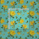 Yellow floral pattern fabric featuring the medicinal herb, St. John's Wort. A pretty blue-green background with blooms, buds and leaves is printed on your choice of cotton, linen and polyester blend materials.