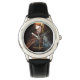 Uhr, Klassische Damenuhr mit schwarzen Lederarmband