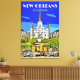 Die Kathedrale von Saint-Louis besticht durch ein Vintages Retro-Kunstbild, das die berühmte Kathedrale in New Orleans, Louisiana, zeigt.