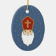 Ein Nikolaus (Anfang Dezember in Europa gefeiert) Ornament mit Schnee auf blauem Hintergrund: perfekt für Ihre Weihnachtsbaumdekoration.