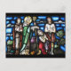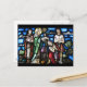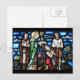Vintages Buntglasbild von St. Patrick mit seinen Anhängern, die einem Mann einen Segen geben.