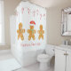 Niedliche Abbildung von drei Lebkuchenmännern in Ferienkleidung. Weihnachtsmannmütze, Winterschals und niedliche bunte Knöpfe sorgen für ein fröhliches Urlaubserlebnis. Die Lebkuchenmänner sind ein wesentlicher Bestandteil der Weihnachtszeit, und dieses Design ist perfekt, um in dieser Saison zu jubeln!