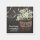 Stilvolle Hochzeitsnapkins mit einer rustikalen schwarzen Kalkplatten-Kulisse, Streichelleuchten, weißen Blume, einem Holzfass mit Ihren Initialen und einem Stück geknüpfte Saite. Für weitere Personalisierungen klicken Sie bitte auf die Schaltfläche "Anpassen", um diese Vorlage zu ändern. Alle Textstile, Farben und Größen können nach Ihren Wünschen angepasst werden. Weitere passende Hochzeitsartikel findest du in meinem Shop www.zazzle.com/special_stationery, aber wenn du nicht findest, was du suchst, kontaktiere mich bitte.