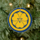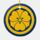 Sakai Mon Japanischer Samurai-Clan gelb auf blau Keramik Ornament