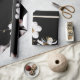 Sakura Blume mit weißer Farbe vor schwarzem Hintergrund. Sakura ist ein japanischer Kirschbaum. Die Saison des Sakura Blühens ist bekannt als Hanami - das Fest des Genusses der Schönheit der Sakura in voller Blüte.