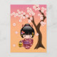 Sakura Kokeshi Doll Niedlich Geisha Girl Postkarte