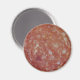 Foto einer Scheibe Salami auf einem Magneten. Du wirst versucht sein, es direkt vom Kühlschrank zu essen. Fügen Sie Ihrer Küche ein wenig Lustigkeit hinzu.