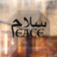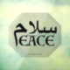 Das Wort "Friede" in der englischen und persischen Schrift ("Salam"), wo der letzte persische Buchstabe "m" auch der erste englische Buchstabe "p" ist - symbolisiert das Zusammenführen von Ost und West durch gemeinsamen Boden