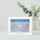 Postkarte mit Trockenpfeifen von Salz mit Reflexion im Wasser gewartet für die Ernte auf dem Salar die Uyuni Salinen in Südbolivien mit weißer Grenze und dem Text: "Bolivien".