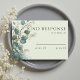 Eine elegante Salbei-grüne Eukalyptus-Hochzeits-RSVP-Karte mit QR-Code für eine freundliche Antwort. Merkmale: Ecken mit Wasserfarbe-Grün und kalligrafischer Schrift.
