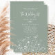 Salbei-Grüne Boho-Weiße Wildblumen-QR-Code-Hochzei Einladung