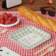 Salbei-grüne Gingham-Hochzeitsdusche-Party Pappteller
