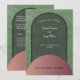 Feiern Sie Ihre Hochzeit stilvoll mit diesem einfachen Bogen und runden Formen in der Natur erdige Töne wie Salbei Grün und eine glänzende Rose Gold mit einem grünen Hintergrund. Die Einladung zur Hochzeit ist einfach, elegant und hat einen modernen boho schicken Stil. Personalisieren Sie es mit Ihren Details, Ihrem Monogramm und Programm für eine wirklich bemerkenswerte Feier.
