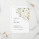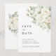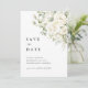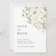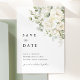Eine verfeinerte Salbeigrün- und weiße Blumen-"Save-the-Date"-Karte, die Ihre Hochzeit mit sanfter Eleganz ankündigt.